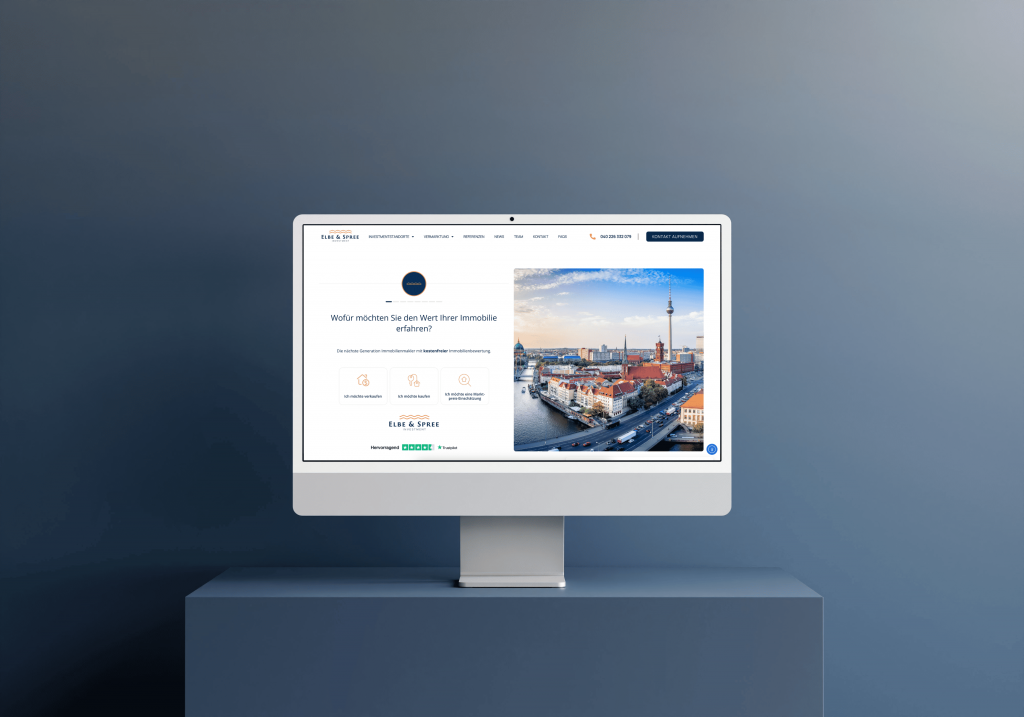 Seitdem habe ich mit vielen Maklern, Projektentwicklern und Investoren zusammengearbeitet, unter anderem auch über mehrere Jahre eng mit der Elbe & Spree Gruppe. Dort konnte ich in zahlreichen Projekten mitwirken – vom Webauftritt über Recruiting bis hin zu Funnel-Logiken zur Verkäufergewinnung.